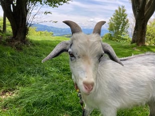 猫たちはいっしょにゴロゴロしたり、元気に走り回っています。ヤギたちもあちこち歩き回っています。