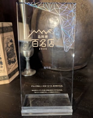いま食べるべき鳥料理の名店ということで、食べログユーザーから高い評価を集めた100店の中に亀甲苑が選出されました。