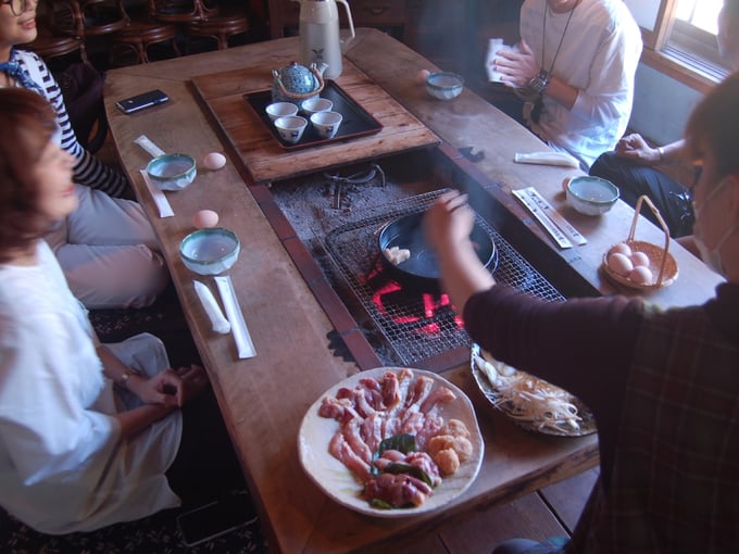 いろりでお食事もできます。亀甲苑へどうぞ。